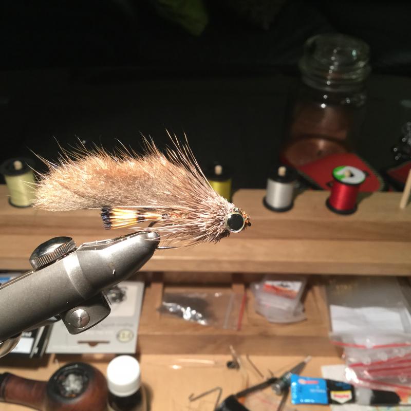 Rafał te muddlery ze schowanymi główkami lecą na łeb, przynajmniej w szklance z wodą....., jednak rzeczywiście rozsądniejsze wydaje się dociążanie ołowiem, co właśnie zacząłem robić. Stowrzyłem takiego ciężkiego potworka - niestety mój błąd przy wykańczaniu wymusił rezygnację z sarniej główki, którą zastąpiłem główką z epoxy z wielkimi oczętami. Czy taka mucha ma sens, czy od razu ją wywalić do kosza ?