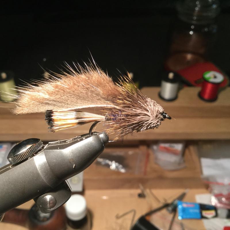 Pierwszy to dociążony główką muddler ze strzyżoną sarenką, sierścią piżmaka i ogonkiem z piór indyka.