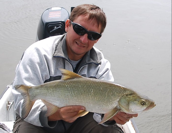 Kuba Opublikowano 23 Czerwca 2009 Zgłoś Udostępnij Opublikowano 23 Czerwca 2009 Natomiast musze stwierdzic, ze ryby bywaja nieprzewidywalne. np. tego ponizej zlowil Kuba na czerwona barylke (woblera) rzucajac dla jaj w strone przytopionego kamieniska na srodku Wisly.Ladna fotka mi wyszla Ja tak w ogóle to nie lowie boleni...małych. Jak już mi sie coś trafi, to 75-80cm. I to zawsze na nienachalny sprzęt - tym razem to byla wklejka do 5g. Cytuj Odnośnik do komentarza Udostępnij na innych stronach Więcej opcji udostępniania...