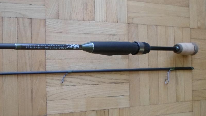 Voldemort Opublikowano 10 Lipca 2018 Autor Zgłoś Udostępnij Opublikowano 10 Lipca 2018 Poppingów z MHX'a sporo już złożyłem, ale chyba jeszcze nie pokazywałem wędki na blanku P842-2MHX w moim wątku.Zatem P842-2MHX czyli 213cm 4-10lb 2-11gram (z opisu), realnie podejrzewam, że ogarnie przynęty o masie łącznej do max 20gram (stawiające niewielki opór w wodzie). Wędka raczej pod pstrąga, okonia, czy sandacza na lekko.Kij uzbrojony w uchwyt TVS16 Fuji przycięty tak by nie wystawał gwint po założeniu kołowrotka.Przelotki Fuji SiC, pierwsze trzy w stożku to Fuji AlconiteMyślę, że wyszło zgrabnie i w miarę lekko 105 gram waga całości, kołowrotek o masie 220gram wyważa wędkę w połowie foregripu. 1 Cytuj Odnośnik do komentarza Udostępnij na innych stronach Więcej opcji udostępniania...