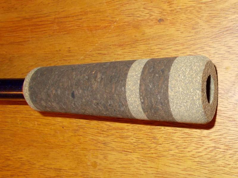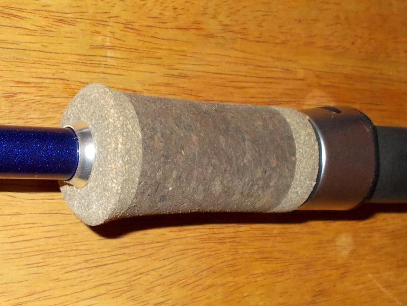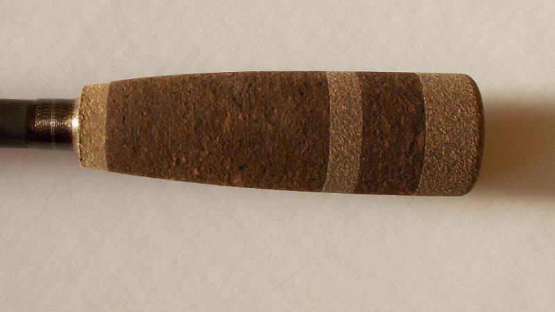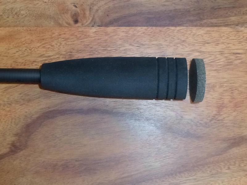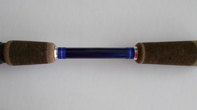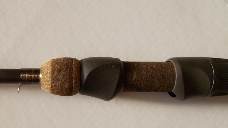 A jak już się zabrałem do wymiany pianki, tak postanowiłem całkowicie przebudować rękojeść - uchwyt KSKSS zamienić na SKSS i przy okazji wytoczyłem nowe elementy rękojeści z pianki EVA (jaka piana jest łatwa w obróbce to nawet mi się nie śniło, a przy tym taniutka - ja kupowałem fają  twardą pianę u Roberta w sklepie  BRC, jeden cylinder za ~ 20zł wystarczy spokojnie na dwie takie rękojeści) Natomiast zrezygnowałem z montażu metalowych pierścieni (bo nie za bardzo je lubię i niepotrzebnie obciążają wędkę)  zamiast nich dałem za to srebrny tipet.
