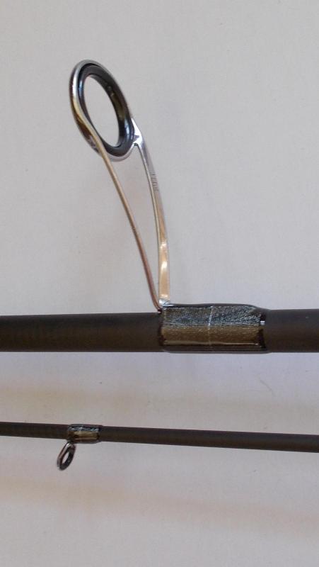 Przy okazji przebudowy rękojeści zmieniłem również przelotki na Fuji Alconite, by nie myśleć podczas holu ryby, czy przypadkiem  plecionka nie przetrze mi się o rowki powstałe w pierścieniach przelotek (SiC no name).