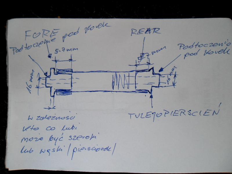 taki właśnie mam plan, i pierścień nie tylko na rear ale i fore. zastanawiam się tylko po co robić tuleje wchodząca w korek?