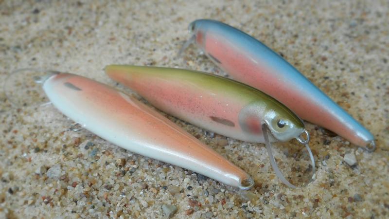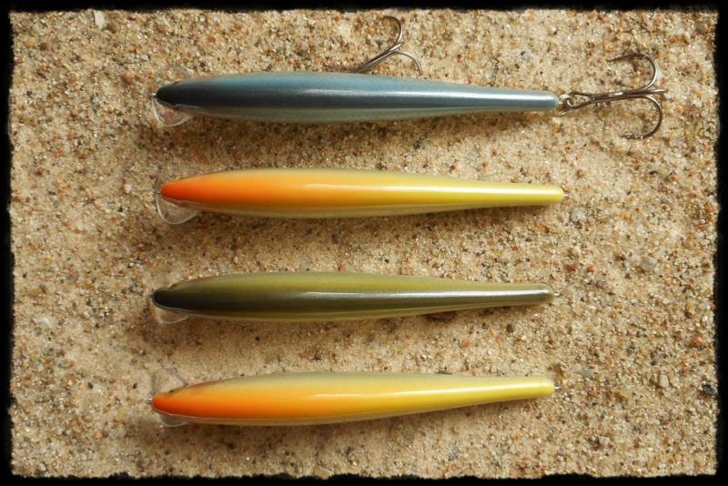 Poniższe fotki pokazują ostatnie moje rękodzieła - są to szczupakowce lub sandaczowce :rolleyes: długość 10 cm i około 15 gram wagi i są tonące: