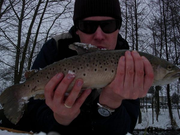 soja Opublikowano 2 Stycznia 2010 Zgłoś Udostępnij Opublikowano 2 Stycznia 2010 Dziś rozpoczynałem jak co roku - na Kwisie.Warunki pogodowe i stan wody - cudo!Miałem trzy pstrągi na brzegu, dwa ok 40cm i jeden ok 35cmPrzepraszam za jakość zdjęcia ale robione z telefonu - aku z aparatu fotograficznego ładowały się całą noc i po jednej focie padły . Cytuj Odnośnik do komentarza Udostępnij na innych stronach Więcej opcji udostępniania...