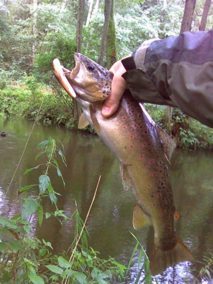Sławek Opublikowano 29 Sierpnia 2010 Zgłoś Udostępnij Opublikowano 29 Sierpnia 2010 Koniec sezonu a wątek zaraz spadnie na drugą stronę... Trzeba odświeżyć. Byłem chyba za późno bo ten był pierwszy i to żerujący. później już tylko skubnięcia. Nadal ma 45 cm - do zobaczenia w przyszłym sezonie . Tym samym mój tegoroczny sezon pstrągowy uważam za zamknięty. Sorki za zdjęcie ale byłem sam a zdjęcie robione komórką. . Cytuj Odnośnik do komentarza Udostępnij na innych stronach Więcej opcji udostępniania...