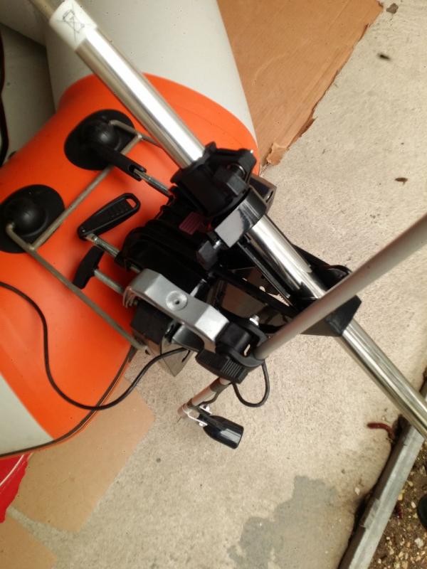 Bardzo dobry materiał rosyjski, pokazuje dwa rodzaje montaży przetworników.Zwraca uwagę chytre mocowanie i poziomowanie przetwornika, które jednocześnie umożliwia składanie do transportu i zabezpiecza przed uszkodzeniem. Jedyna niewiadoma to ew. drgania samego przetwornika na takim przegubie podczas płynięcia na elektryku, bo na spalinie opór wody będzie dociskał ogranicznik do ramy.  Zamieszczam jako zachętę dla rzemieślników lokalnych. Sam bym ten nierdzewny z chęcią przytulił.....
