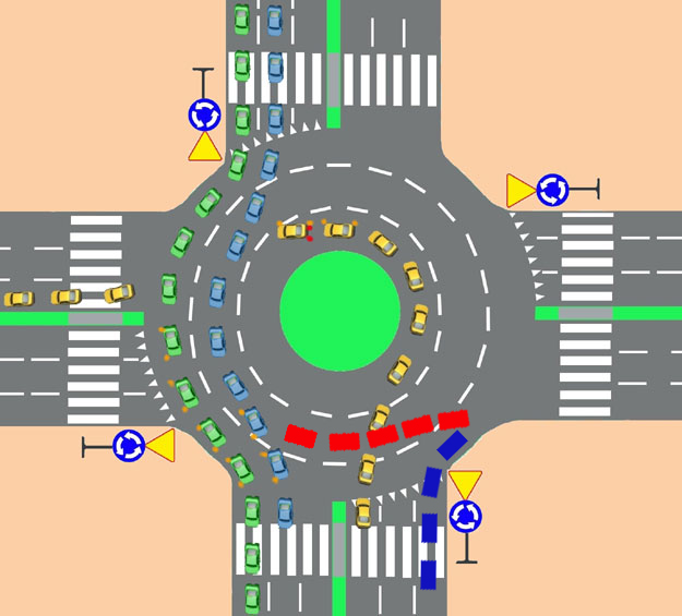 Można rzeczywiście przy założeniu, iż pasy ruchu na rondzie są separowane linia przerywaną (to jeszcze bardziej gra na korzyść Manka ;) ). Siła przyzwyczajenia, we Francji zlikwidowano na większości rond pasy. I w takiej sytuacji prawnie nie wolno wyprzedzać, no a w praktyce...