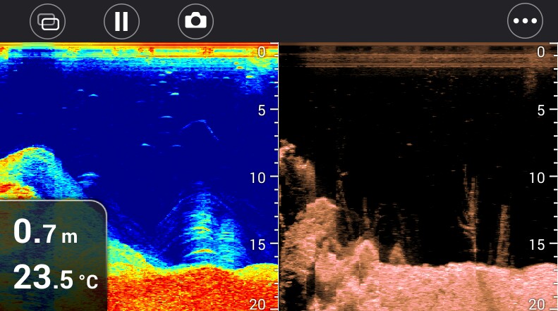0 Lipkor Opublikowano 13 Października 2015 Zgłoś Udostępnij Opublikowano 13 Października 2015 W aplikacji Wi-Fish w trakcie odbioru obrazu jest paskek na górze ekranu i masz trzy opcje:- od lewej zmiana wyświetlanego ekranu downwision / echo, samo echo i sam downwision- pauza i możliwość przeglądania wstecz-i kolejnym można zrobić print scrn.Po kliknięciu na ekranie pojawia się kolejna ikona z kilkoma opcjami ustawień wyświetlania, można zmienić kolory na wyświetlaczu itd. 1 Cytuj Odnośnik do komentarza Udostępnij na innych stronach Więcej opcji udostępniania...