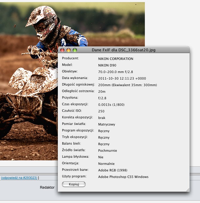 dawid_ Opublikowano 7 Grudnia 2011 Zgłoś Udostępnij Opublikowano 7 Grudnia 2011 Do Firefoxa polecam wtyczkę http://christian-eyrich.de/mozilla/fxif/ Cytuj Odnośnik do komentarza Udostępnij na innych stronach Więcej opcji udostępniania...