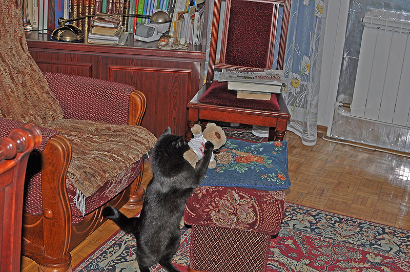 Gumofilc Opublikowano 15 Lutego 2012 Zgłoś Udostępnij Opublikowano 15 Lutego 2012 Na razie mam patent - kawalek sznurka z papierkiem na koncu. Jak pogania w kolko z godzine dziennie + wyskoki to jak we wojsku - ....wojsko ma myslec o tym, zeby zeżreć i sie wykasztanić....i lulu <_< A poki nie zapasiony niezly jest - na parapet z prostych nóg wskakuje... Gumo Cytuj Odnośnik do komentarza Udostępnij na innych stronach Więcej opcji udostępniania...