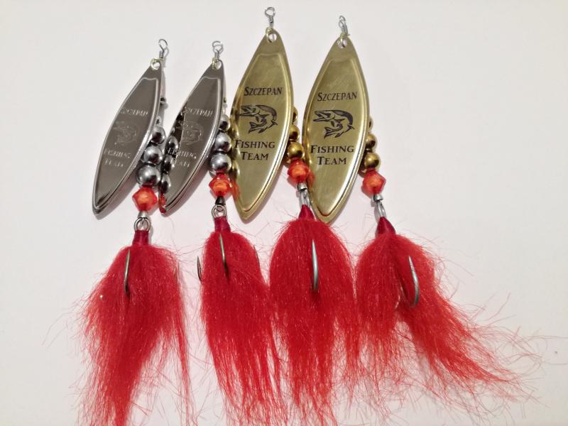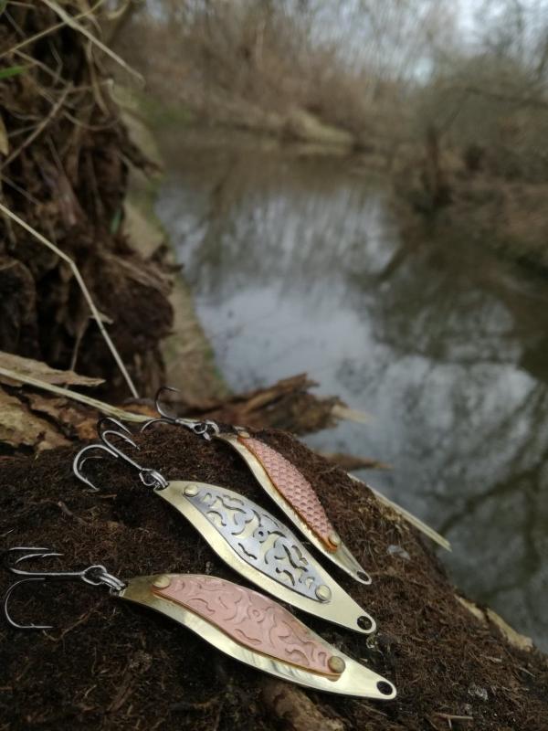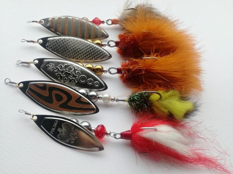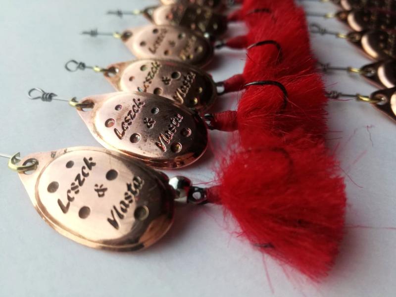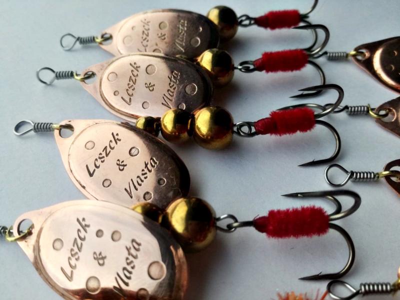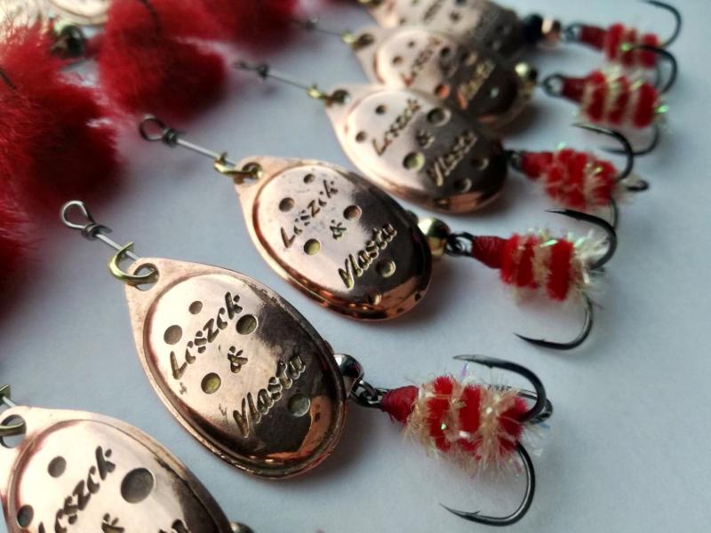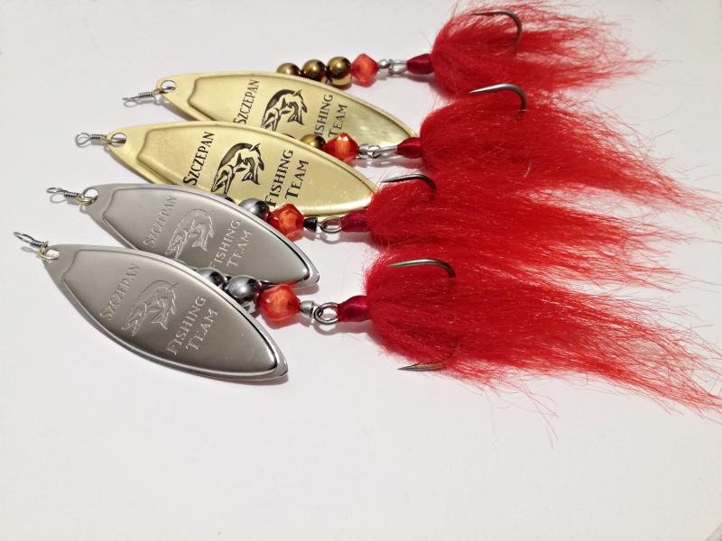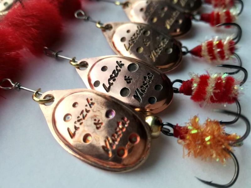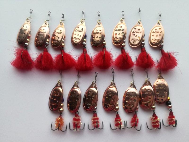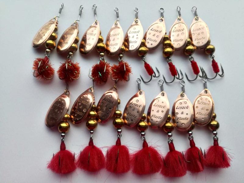 nr 5 lubi bujać korpusem. Jednak ta masa paletki potrafi rozchwiać  całą przynętę i nie pracuje po w osi. Po poprawkach już lepiej ale najlepiej to wyciąć  jak najwięcej ze skrzydełka/paletki tak by ją odchudzić.Albo co widzę u innych producentów tej wielkości obrotówka z szerokim listkiem nie może być ...goła.. duuży chwost już poprawia pracę . Inna  opcja to 2 szt. skrzydełek  na podwójnym strzemiączku i wszystko się wyważa. Wolę jednak odchudzić skrzydełko ile się da i dodać chwościk.testy jutro