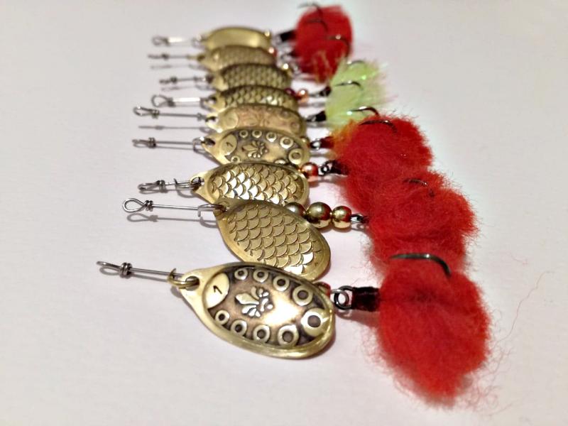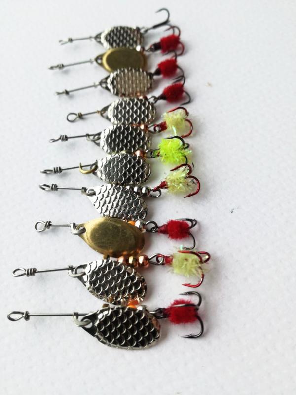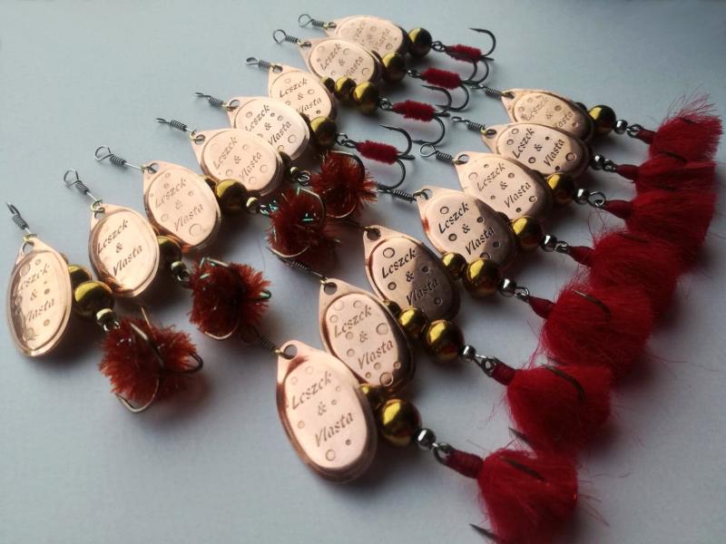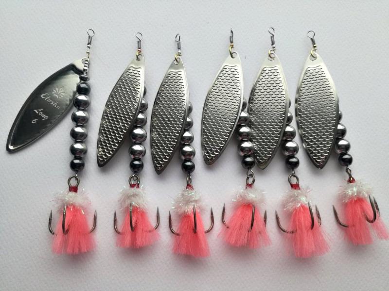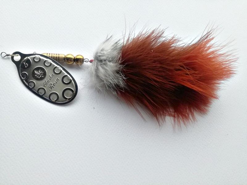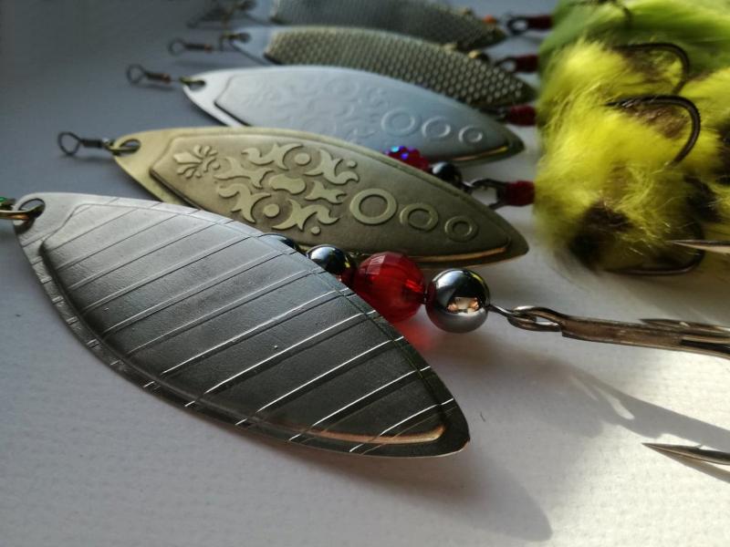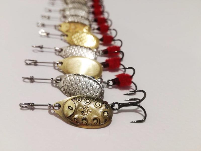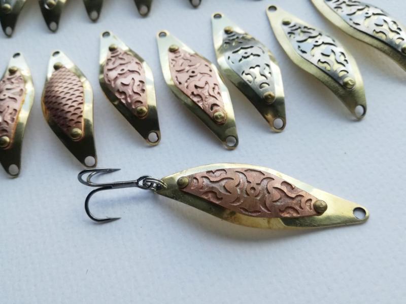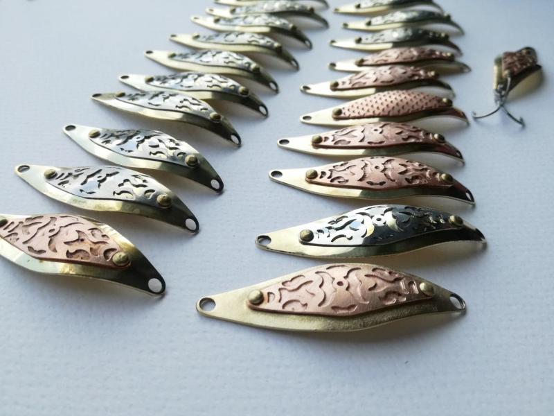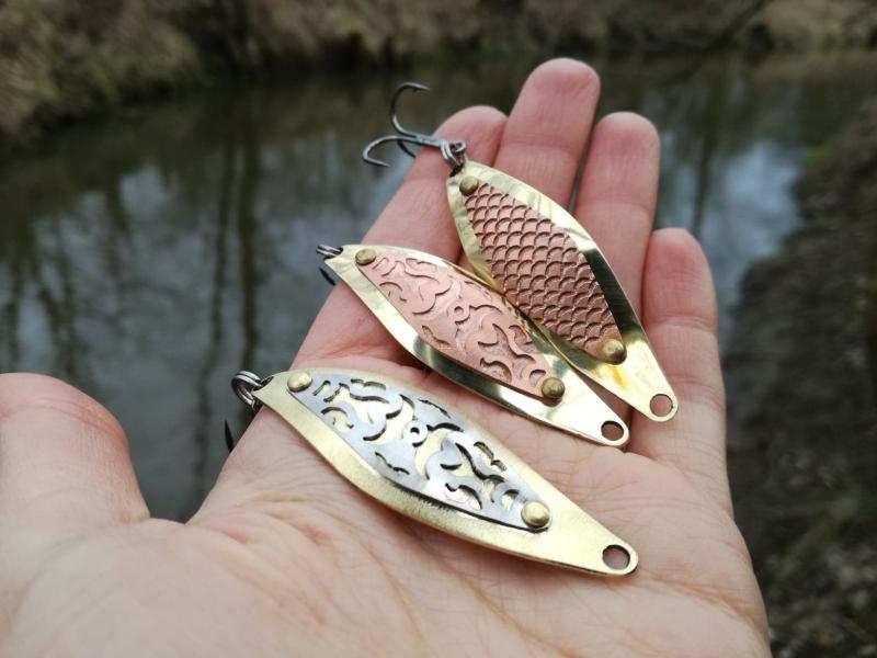 nr 5 lubi bujać korpusem. Jednak ta masa paletki potrafi rozchwiać  całą przynętę i nie pracuje po w osi. Po poprawkach już lepiej ale najlepiej to wyciąć  jak najwięcej ze skrzydełka/paletki tak by ją odchudzić.Albo co widzę u innych producentów tej wielkości obrotówka z szerokim listkiem nie może być ...goła.. duuży chwost już poprawia pracę . Inna  opcja to 2 szt. skrzydełek  na podwójnym strzemiączku i wszystko się wyważa. Wolę jednak odchudzić skrzydełko ile się da i dodać chwościk.testy jutro
