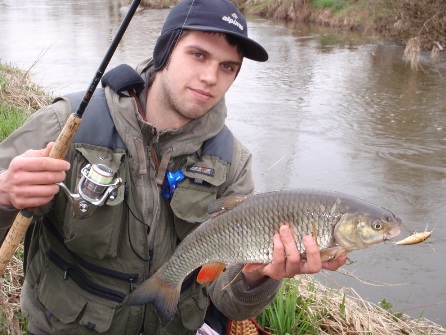 Tomasz K Opublikowano 19 Kwietnia 2010 Zgłoś Udostępnij Opublikowano 19 Kwietnia 2010 Tak. Stan wody wysoki, rzeka mętna; zakręca w tym miejscu szerokim łukiem. Na dnie wiele kamieni i ogromnych głazów, przy brzegu wąski pas traw bądź podmyta burta. Po zakręcie, gdzie rzeka powoli prostuje swój bieg miejsce jest dalej bardzo ciekawe, nurt znacznie zwalnia ale jeszcze jest głęboko, a na dnie dużo atrakcji dla kleni. Tam właśnie były ryby. Łowiłem kijem na blanku Batsona mojej produkcji, do 14g, 2,7m. Żyłka 0,20mm. Wobler trochę taki z dna pudełka; to stary dorado lub wrocławska Rapa, sam nie wiem. Dziękuję za zainteresowanie i pozdrawiam.Tomek Cytuj Odnośnik do komentarza Udostępnij na innych stronach Więcej opcji udostępniania...