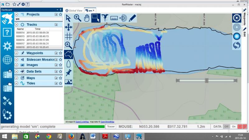 Byłem, nagrywałem część wody, wkleiłem tracki, dodałem plik kml całego jeziora z googli earth i nie mogę uzyskać widoku jeziora z warstwicami.  Postępując zgodnie z instrukcją tutoriala po wklejeniu składników - tam mają tracki po całej wodzie, taki widok jest dostępny.