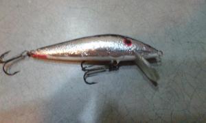 Ten srebrny to drugi, malowany w oryginale bialy brzuch i jasnoniebieski grzbiet a na to srebrna luska przez siatkę. Oczy były wykonane przez naklejenie krążka z żółtego tworzywa i zrenicy malowanej czarną farbą. Co ciekawe wobler nie ppsiadał wierzchniej warstwy lakieru bezbarwnego wiec po kolku szczupłych wszystko zlazlo i odslonił sie stytopian. Folią sam okleiłem:)