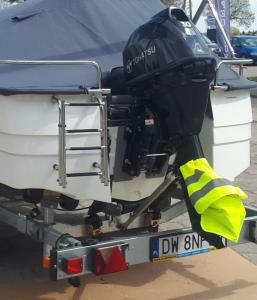 Transport łódki z silnikiem - przewożenie silnika na łodzi (w tym uchwyt lub podpora)