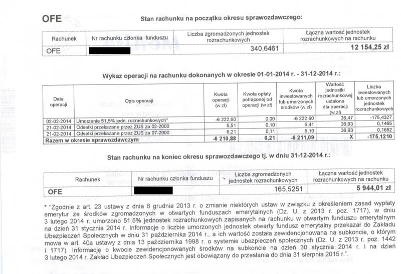 Mam pytanie do biegłych w kwesti ofe . Otrzymałem roczne sprawozdanie z ofe i zastanawiam sie czy jest mozliwość fizycznie wypłacenia pozostałej części pieniędzy na rachunku zanim będzie za późno ? Zanim łączna wartość , pozostała w tej chwili na rachunku , zostanie wliczona w tzw ryzyko i po prostu szlag to trafi a w nastepnym rozliczeniu będzie 0zł . Do listu tego dołączono także półstronicowy opis ryzyka zwiazanego z byciem członkiem ofe co ewidentnie wskazuje , że złodzieje ukradną te pieniądze lub jednostki .... legalnie , zgodnie z prawem  <_<