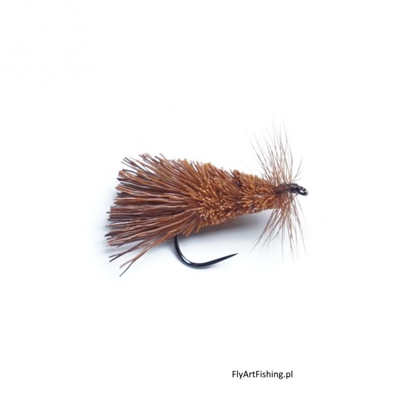 Goddard Sedge. W założeniu imitacja chruścika wykonana z sierści zimowej sarny lub jelenia. W założeniu bo równie dobrze może imitować małego chrząszcza lub inny tłusty kąsek który wpadł do wody. Bez tej muchy nie ruszam się na pstrągi.
