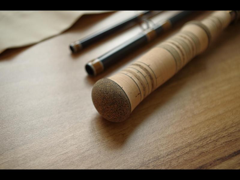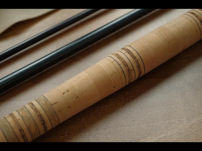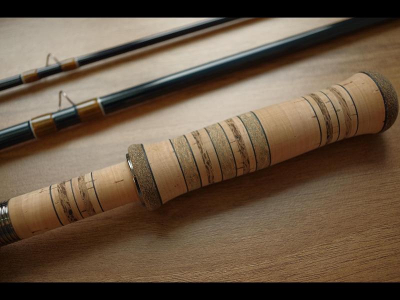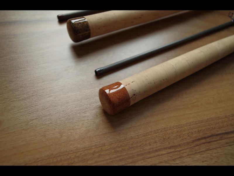 Praca taka sama jakbyś sklejał jednorodny korek , no może poza cienkimi wstawkami ,ale to mniej więcej to samo .Można sobie przygotować wstawki docinając na tokarce elementy seryjnie i przy klejeniu rękojeści po prostu doklejać różne kolory . Projekt piękny technicznie ,lakier bajka , omotki + tipet ...lepiej już nie można, ale rękojeść dla mnie trochę za pstrokata lubię jednak klasykę i nie za dużo różnokolorowych wstawek.