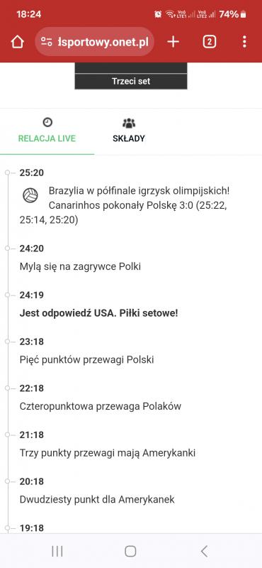 Maciej W. Opublikowano 7 Sierpnia 2024 Zgłoś Udostępnij Opublikowano 7 Sierpnia 2024 Niestety, Amerykanie się pozbierali, a Polacy gonią bez przerwy wynik, zamiast grać swoją siatkówkę. Nie wygląda to za dobrze. I Zatorski chyba wypada. Cytuj Odnośnik do komentarza Udostępnij na innych stronach Więcej opcji udostępniania...