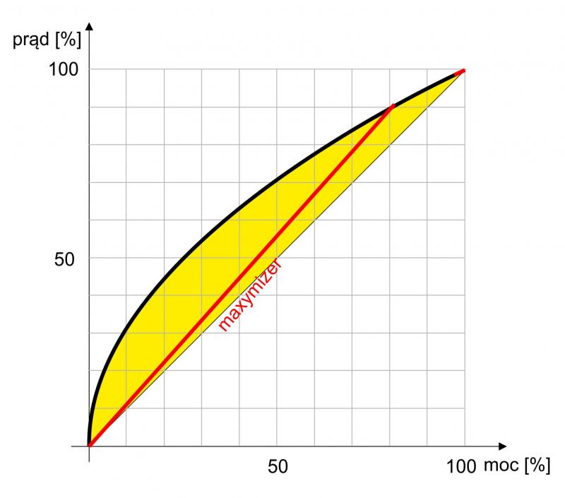 W każdym razie z tych wzorów wychodzi wykres poboru prądu przez zwykły silnik w zależności od nastawionej mocy (czarna linia).