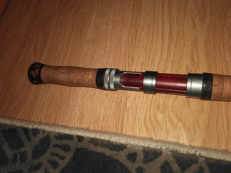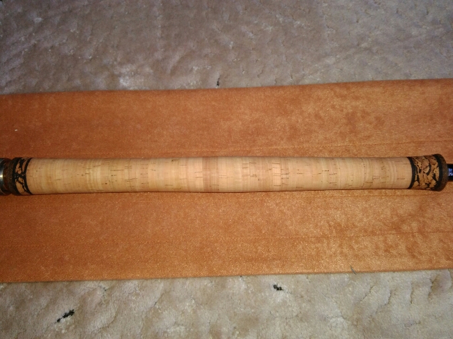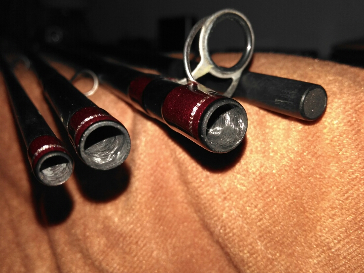 Wędka została wykonana bez lakieru na blanku i z przelotkami S6 ultralight, aby nie potrzebnie nie dodawać jej ciężaru i nie spowalniać pracy. Szybkość kija określona jest jako ex-fast, a ugięcie med-fast i tak jest naprawdę. Głowic używam w wadze 500-520 grain i w połączeniu z runningiem vision flat shooter 35lb rzuty bez problemu przekraczają 35m. Jest to blank "tradycyjny" - nie nano (jak go zamawiałem, to jeszcze nie było nano).