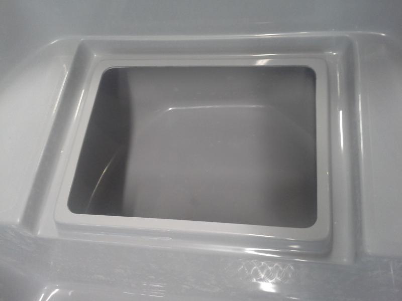 Na środkowej ławce w łatwy sposób możesz wykonać bakistę zamykaną z boku. Będziesz musiał uszczelnić dno, zalaminuj je używając tkaniny szklanej i żywicy. Pod ławką został kanał, którym woda będzie mogła swobodnie przepływać. Wykonaj "próg" o wysokości około 7 - 10 cm z  sklejki wodoodpornej, którą zalaminujesz razem z dnem. Całość zamknij drzwiczkami z tworzywa sztucznego lub bakielitu. Drzwiczki zamocuj na zawiasach i wykonaj zamknięcie.