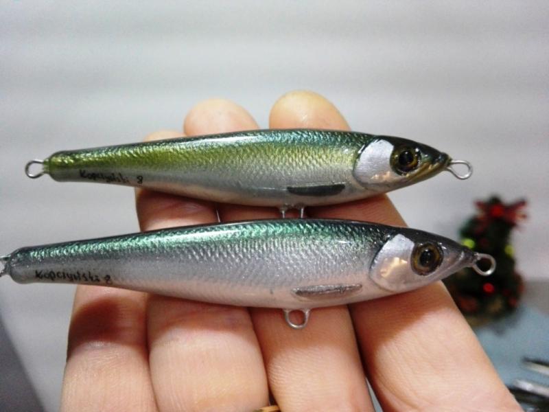 kooper82 Opublikowano 4 Stycznia 2019 Autor Zgłoś Udostępnij Opublikowano 4 Stycznia 2019 Witam. Tak jak pisałem siedziałem nad małą bezsterówka na Bolesława. Woblerek bez oczek o dł ok 5,5 cm , waga od 7 do ok 7,5 gr, wykonany z żywicy, drut 0,8 mm, oczka moje, lusterkuje w opadzie, Woblerek ten powstał z myślą o wiosennych boleniach żerujących na drobnicy ukrywającej się na spokojniejszej wodzie. Aby woblerek mógł kusić na większym nurcie będę musiał dołożyć troszkę bebeszków. Ale to dopiero jak zrobię sobie nową foremkę pod ołów ( moja gipsowa strasznie mnie denerwuje ) Zdjęcia robione telefonem, więc nie powala. 13 Cytuj Odnośnik do komentarza Udostępnij na innych stronach Więcej opcji udostępniania...