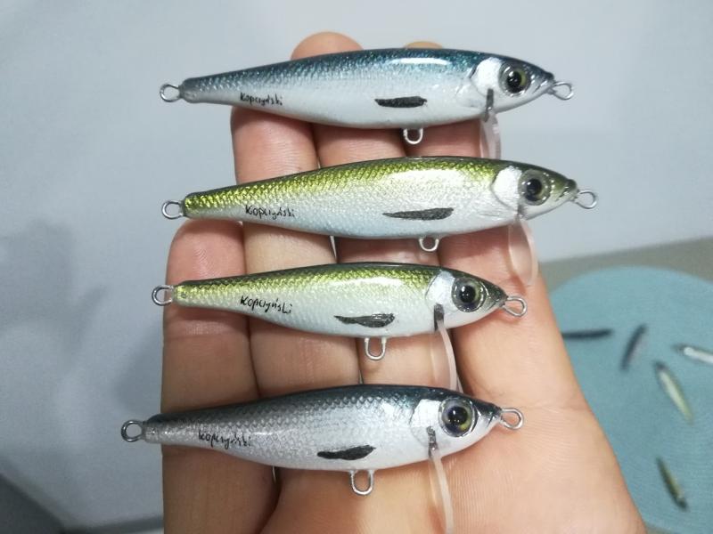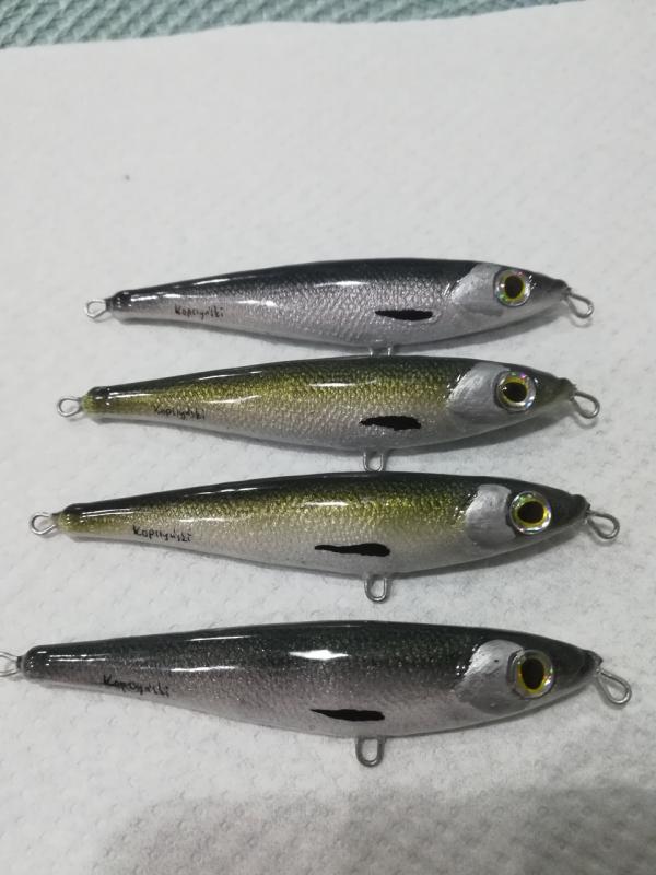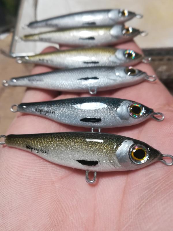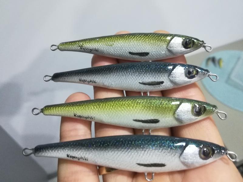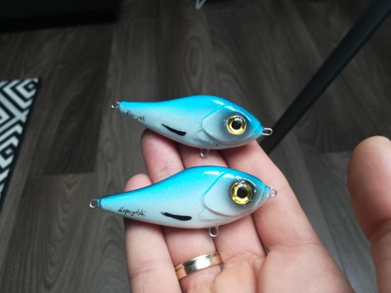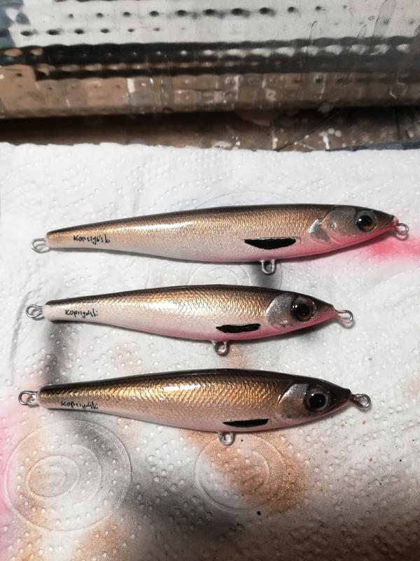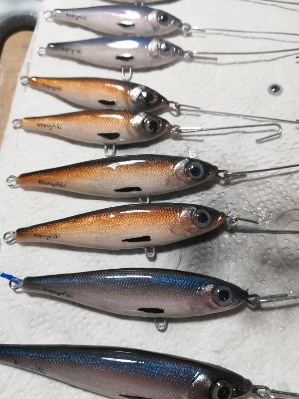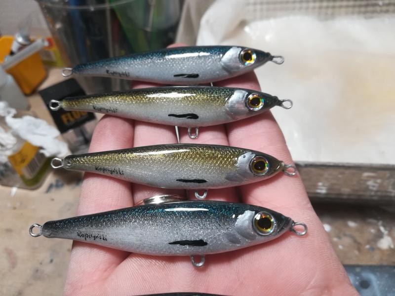 kooper82 Opublikowano 27 Lipca 2019 Autor Zgłoś Udostępnij Opublikowano 27 Lipca 2019 Witam. Jako ,że boleń to rybka dla mnie nr 1 , ciągle coś sobie robię pod gusta tej rybki. Aaa i jeszcze pobawiłem się kolorami ...... i powstał taki ,, oczojeb,,może to skusi jakiegoś Zanderka. Woblerki wykonane z żywicy ( boleniowe 7 cm) a ten jaskrawy 8 cm Paca szybkie lusterko podczas zwijania , w opadzie lusterkuje- ładne wąskie bujanie(amplituda i kat zamiatania dupką uzależniony od szybkości ściągania ) w opadzie lusterkujeNo tyle na dziś. Jutro jadę na urlop więc już nic nie powstanie. Pozdrawiam Piotr 6 Cytuj Odnośnik do komentarza Udostępnij na innych stronach Więcej opcji udostępniania...