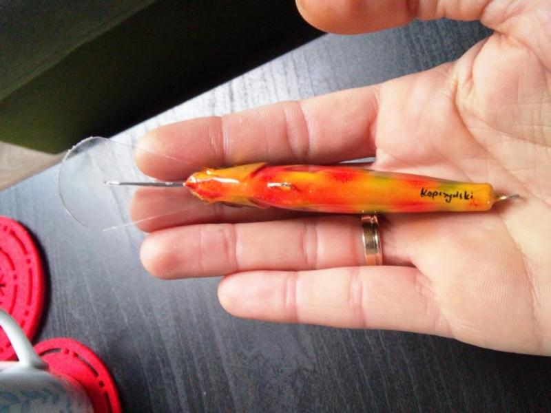 kooper82 Opublikowano 3 Grudnia 2016 Autor Zgłoś Udostępnij Opublikowano 3 Grudnia 2016 Witam . Przedstawię jak zwykle woblery pod zębatego długość 8 do 9 cm ( bez steru) , waga mniejszy okonek 13 gram , pozostałe po 15 gram, praca X , wykonane z lipy. Jednego próbowałem pokryć brokatem nie wyszło mi to zbyt ładnie ale jakoś trzeba coś urozmaicić ( ten bez steru - nie testowany jeszcze ). Płetwy mi niezbyt ładnie wyszły przedobrzyłem z farbą - zbyt rzadka i musiałem jakoś się ratować) 3 Cytuj Odnośnik do komentarza Udostępnij na innych stronach Więcej opcji udostępniania...