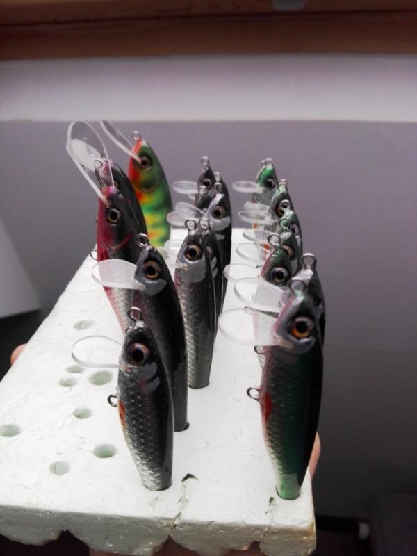 kooper82 Opublikowano 12 Stycznia 2018 Autor Zgłoś Udostępnij Opublikowano 12 Stycznia 2018 Witam. szanowne grono dłubaczy tak jak obiecałem wstawiam fotki zdjęć boleniówek z amelinium , lipka , drut 0,8, długość - mniejsze do 6 cm ( około 6 -7 gr) a większe 7.5 cm (10-11 gr), poliwęglan 1,5 mm, farby dla odmiany Farby akrylowe VALLEJO metalik ( bardzo ładnie się nimi maluje , nie zapychają i ładne kolorki dają ) oczka moje . Zdjęcia zmuszony byłem robić w moim królestwie zwanym piwnica , więc na otoczenie proszę nie zwracać uwagi.Zacznijmy od mniejszych : teraz większe: No i jeszcze bonus . 3 szt szczupakowych , lipka , drut 0,8 , dł do 8 cm , waga 12-13 gram, pływajace , I całe stadko Miłego oglądania 8 Cytuj Odnośnik do komentarza Udostępnij na innych stronach Więcej opcji udostępniania...