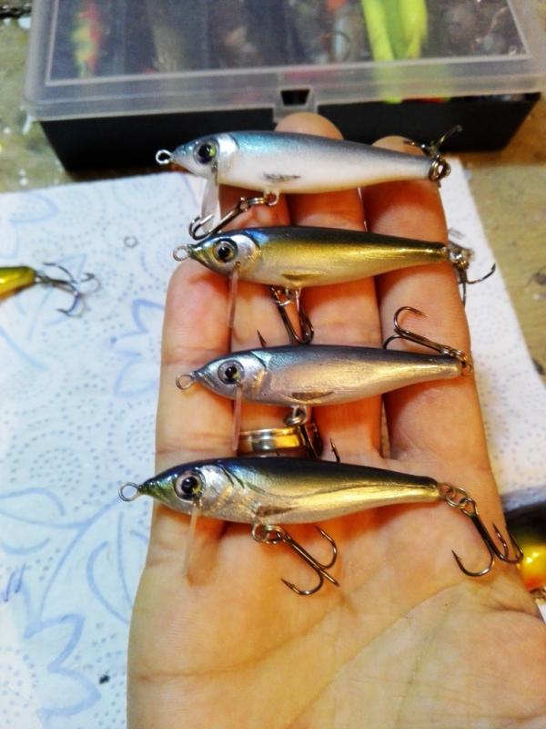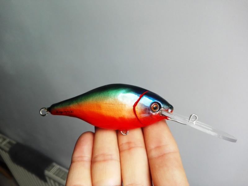 kooper82 Opublikowano 5 Sierpnia 2018 Autor Zgłoś Udostępnij Opublikowano 5 Sierpnia 2018 Witam po przerwie. Troszkę postrugałem w lipie, i tak powstało kilka woblerów. Malowane farbkami od Rudiego, farbki transparentne i opalizacja, Tak na żywo kolory wyglądają zajeb.......... aparat w telefonie którym robię zdjęcia nie daje rady więc zdjęcia są jakie są. Farbki od Rudiego i drut od Janusza mogę z całą odpowiedzialnością polecić Oczka moje 1. sumowe , waga 24-27 gr, po założeniu kotwic powoli toną, dł 9cm bez sterów , poliwęglan 2mm , drut 1,5mm, skręcany 2. szczupakowe, waga 12-13 gr, pływaki, dł.8cm, poliwęglan 1,5mm, drut od Januszka kurde nie pamiętam, chyba 0,9 mm 3. sandaczowe , waga 9 gr. dł 9,5cm, poliwęglan 1,5mm , drut taki jak w szczupakowych - troszkę podejrzałem Rudiego z tymi barwami . Mam nadzieje, że się nie pogniewa I tyle na dziś i na jakiś czas . Spadam koledzy na urlop :) . Pozdrawiam 8 Cytuj Odnośnik do komentarza Udostępnij na innych stronach Więcej opcji udostępniania...