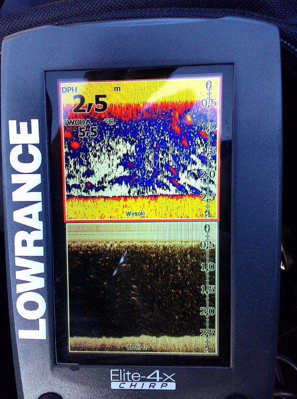 Chciałbym uzyskać pomoc na temat mojej echosondy. Od 3 miesięcy jestem posiadaczem echo Lowrance Elite x4 CHRIP i do tej pory wszystko mi się w niej podobało, działała bez zarzutów. Podczas ostatniego wypadu na ryby, echo zaczęło pokazywać bardzo dziwne i niewyraźne odczyty. Nie wybyło już widać łuków ryb, a cały ekran mimo obnizenia czułości, ustawienia trybu niskiej wody i włączeniu opcji "brudna woda" pokazywał takie jakie przedstawiam na załączonych zdjęciach. Co może być tego przyczyną? Czy to uszkodzenie echosondy?