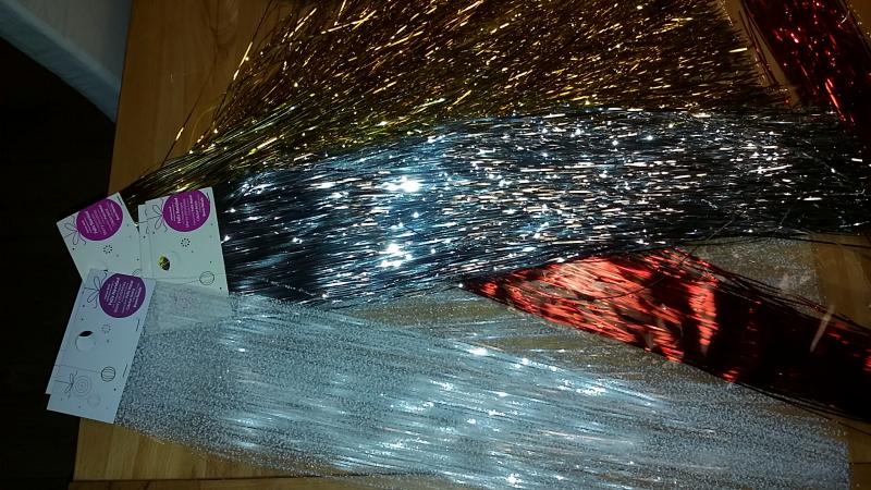 Kacper.K Opublikowano 15 Listopada 2015 Zgłoś Udostępnij Opublikowano 15 Listopada 2015 Przerabiałem temat tych świątecznych ozdób i również uważam, że znamienita większość jest kiepska. Znalazłem im jakieś zastosowanie, ale w porównaniu do flashy zaadoptowanych do flytyingu wychodzą blado. Przeważnie są albo za grube i zbyt słabe, albo jak już grubość, a raczej szerokość jest odpowiednia to są za sztywne. Może się jeszcze na coś ciekawego natknę na świątecznym straganie. Odnoszę się do ozdób, które znalazłem w Polsce, możliwe że za granicą będą lepsze. Widziałem w tym roku w Berlinie fajne flashe w stylu Flashabou Magnum z efektem holograficznym, niestety nie miałem czasu żeby stać w pokaźnej kolejce, cena ~ 3 euro.Wybaczcie jakość zdjęć, lepszych nie mam. Cytuj Odnośnik do komentarza Udostępnij na innych stronach Więcej opcji udostępniania...