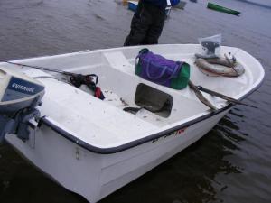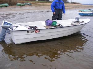 Pływam zwykle w 2 osoby, czasem 3. Do łódki planuję podwiesić zasłużony silnik Johnson 9,9 2T, na krótkiej stopie. Zasada - bezpieczna, funkcjonalna łódka, w której dwie osoby spokojnie zmieszczą graty, wędki, podbieraki i inne rzeczy.