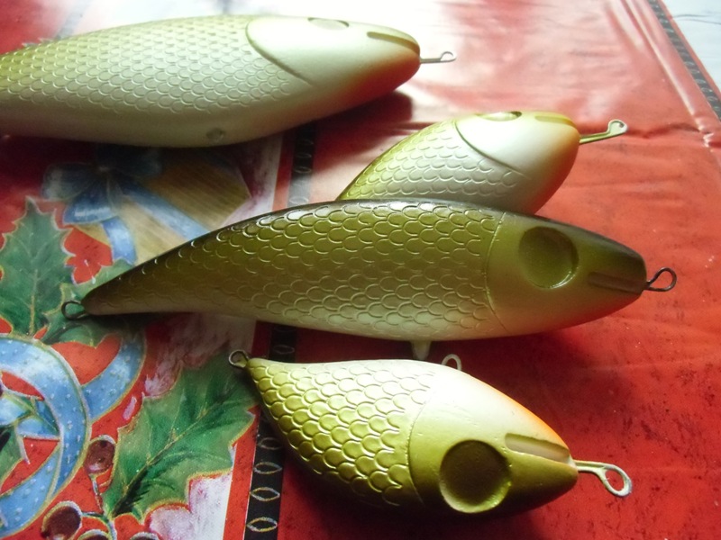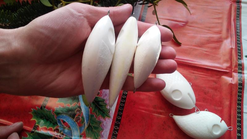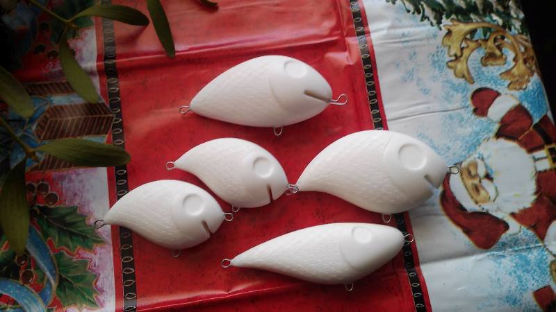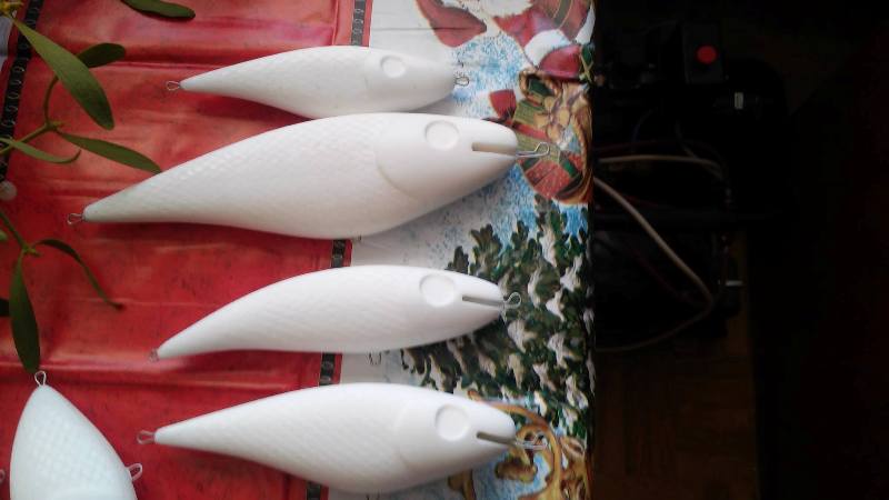 Zmasjstrowałem ostatnio kilka foremek i wyszło coś takiego. Te które leżą zbiorowo maja po 9 cm i dwa mniejsze płytko chodzące 7 cm. Z tych siódemek zrobię chyba jerka. Na nocne wąsale i nie tylko na nie będą idelane. Jerk ma 10 cm.