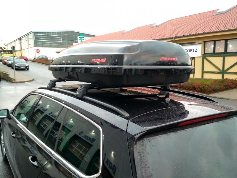 No i box zakupiony. Pojechałem tylko przymierzyć ale jednak kupiłem. Wybór padł na Kamei 510. Trochę duży ale spełnia wymogi długości wewnętrznej a na zewnątrz ma jedynie 200 cm. Dodatkowo ma pewniejsze mocowania na obejmę. Patent Thule z tymi chwytakami nie budzi mojego zaufania. Trzy mocowania pasów w środku więc można wszystko spiąć solidnie - nośność ma 75 kg. Dodatkowo 6 lat gwarancji i kolorek metalik - pasi do auta. Był z wystawy i za kilka drobnych rysek dostałem jeszcze rabacik. Zapłaciłem więc ok połowę ceny tego boxa w Polsce która jest co najmniej chora.