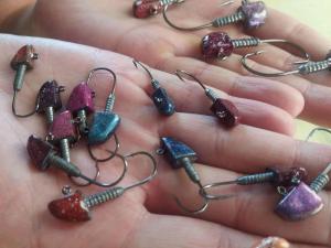 Andrzej Stanek Opublikowano 18 Grudnia 2009 Zgłoś Udostępnij Opublikowano 18 Grudnia 2009 Polecam prosty i sprawdzony sposób uatrakcyjnienia ołowiu - główki. Stosuję ten knif dwa sezony i jest bez pudła. Biorę klej dwuskładnikowy (BISON EPOXY), rozrabiam i nanoszę na główkę równomierną warstwą. W pojemniku mam przygotowany brokat - taki dla celów ozdobnych. Brokat występuje w wielu kolorach i ma metaliczny odcień. Posmarowaną główkę zanurzam w pojemniku z brokatem. Musi być to płynny ruch. Delikatnie potrząsam i wyciągam. Jedno puknięcie o podstawione plastikowe wiaderko (strasznie się sypie) i odstawiam do utwardzenia wieszając za hak jiga. Schnie 24 godziny. Warstwa która powstaje jest jak skała. Bardzo równomierna powłoka daje super efekt. Polecam kolor czarny, złoty. Elementy brokatu oklejone na główce dają ciekawe efekty świetlne. Jig z taką główką jest atrakcyjny dla wędkarza i ryb... 5 Cytuj Odnośnik do komentarza Udostępnij na innych stronach Więcej opcji udostępniania...