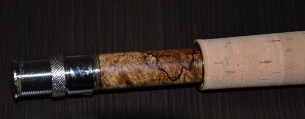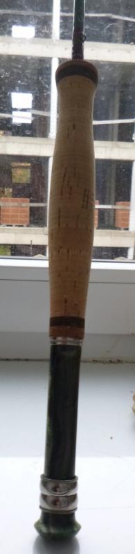 Darek K Opublikowano 15 Października 2017 Autor Zgłoś Udostępnij Opublikowano 15 Października 2017 We wakacje doczekała się budowy kolejna wędeczka - tym razem muchówka do strimera 9' #6 na blanku TAC GreenSpirit. Uchwyt do kołowrotka to dzieło Artura (ark70). Ponieważ akurat nie miałem dostępu do tokarki to wskoczyłem do Huberta i wytoczył mi rękojeść.Rękojeść miała być w kształcie full, ale jak zobaczyłem taki zarąbisty uchwyt to zmodyfikowałem kształt, aby nie przytłumił drewna. Trzeba się do takiego przyzwyczaić, ale z wyglądu mi się podoba.Wędka przetestowana, co prawda na niezbyt okazałym pstrągu, ale akurat jak byłem na rybach po zrobieniu wędki to strimer nie chodził.Ponieważ lakierowałem ją na działce przy ładnej pogodzie to suszyłem ją na dworze i niestety parę owadów lakier chwycił - co widać na zdjęciach jako jakby nadlewy.Przy okazji wizyty u Huberta nabyłem kolejny blank do spina, który czeka na realizację - rodbuilding jednak wciąga. 2 Cytuj Odnośnik do komentarza Udostępnij na innych stronach Więcej opcji udostępniania...