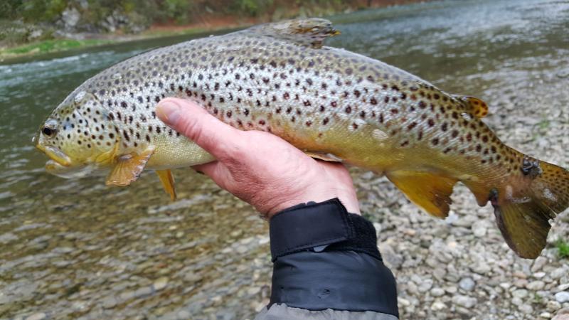 Weekendowe pstrągowanie. Wynik niestety 1:3 (dla kropków +40). Zagryzały wobka hand made i jigi w kolorach oliwki. Wiało tak, że chciało urwać głowę. Na pocieszenie piękne widoczki i honorowy kropek słusznych rozmiarów, reszta sporo mniejsza.