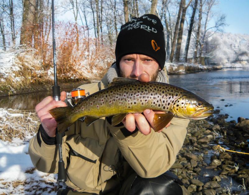 Winko Opublikowano 31 Stycznia 2016 Zgłoś Udostępnij Opublikowano 31 Stycznia 2016 (edytowane) Bardzo rzadko goszczę w tym wątku ale mi również udało się dziś rozpocząć sezon pstrągowy - rz. Ropa okręg Nowy Sącz. Pogoda dość wietrzna, temperatura ok. 4 stopni, woda mętna pośniegowa z dużą ilością liści itp. Jedyna dzisiejsza rybka 44cm na 7mio cm. FANATICa Salmo.Sorki za kiepskie fotki ale to tylko klatka stop z nagrania. Nie chciałem go zbyt długo przytrzymywać na brzegu grzebiąc w torbie za aparatem Edytowane 31 Stycznia 2016 przez Winko 30 Odnośnik do komentarza Udostępnij na innych stronach Więcej opcji udostępniania...