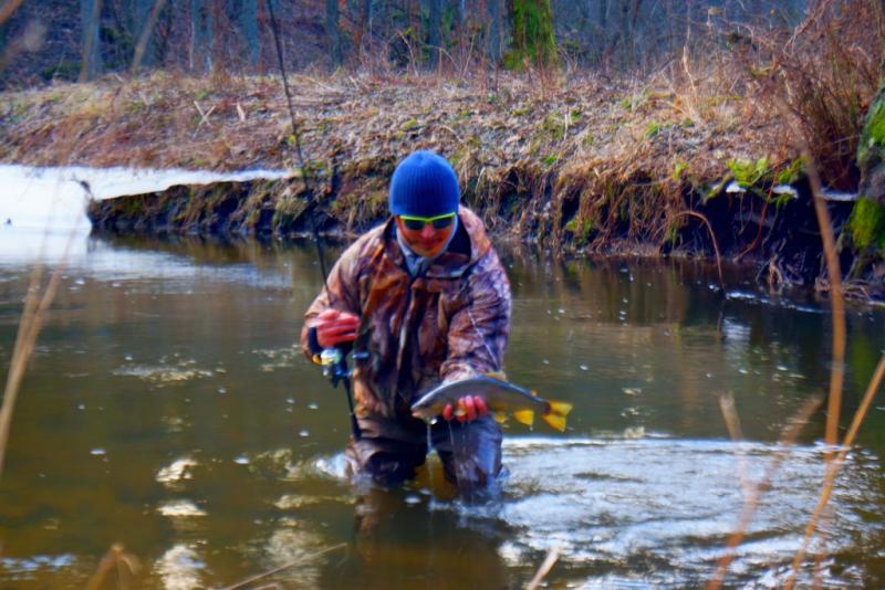 Wiktor Opublikowano 19 Stycznia 2016 Zgłoś Udostępnij Opublikowano 19 Stycznia 2016 Extreme zostało zbudowane jesienią na okonie. Niestety nie było czasu na okonie i leżał. Wczoraj pomyślałem ze wezmę sprawdzę a możne...Totalny eksperyment.Czy on za szybki? Na ta wielkość na pewno nie innych nie miałem bo branie miałem jedno. Branie takie ze....nie wiem jak to opisać, branie było żadne. Może na moim FX-sie nawet bym nie poczuł? Nie mniej ryba w fajnej kondycji, dala popalić a zapięta za skórkę. Utrzymał rybę a przyzwyczaiłem się już ze tracę takie ryby. Bardzo ciężkie miejsce do podebrania,przygody z lekka kąpielą , trochę się naczekał zanim trafił do podbieraka i nie spadł!! Może znalazłem swój kij na pstrągi? Przydał by się taki 7,6 i w dwu składzie 5 Odnośnik do komentarza Udostępnij na innych stronach Więcej opcji udostępniania...