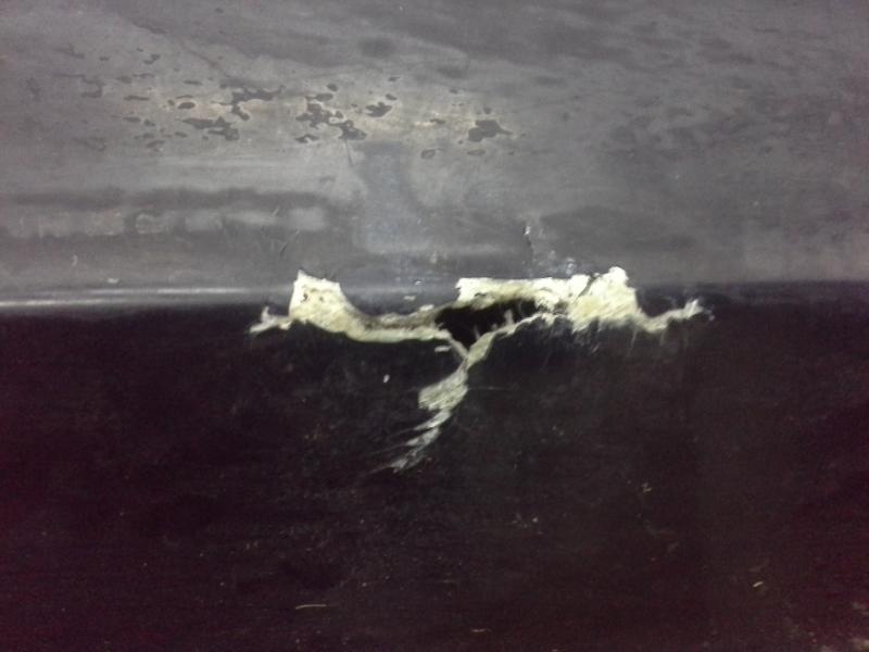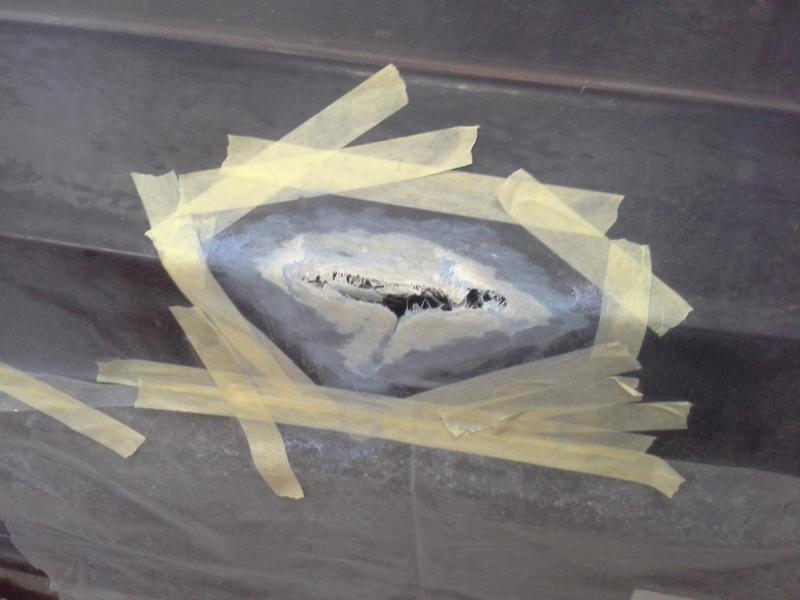 Dziurka w dnie była bardzo malutka...a po oszlifowaniu wyszło długie pękniecie w poprzek i w tył kadłuba oraz drugie mniejsze pod drugą rolką.