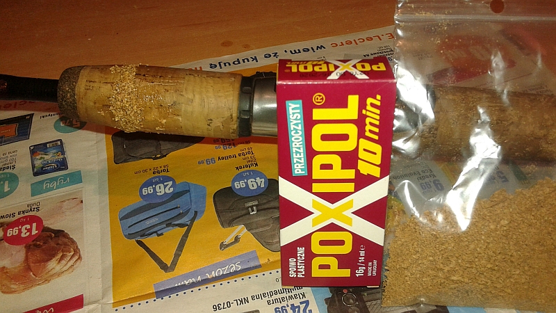 pasiak33311 Opublikowano 19 Stycznia 2016 Autor Zgłoś Udostępnij Opublikowano 19 Stycznia 2016 Witam ponownie,Dziękuje za wszelkie porady, które okazały sie bardzo przydatne. Zastosowałem sposób z klejem epoksydowym i jestem mega zadowolony. Dla osób które mają podobną usterke zamieszczam krótki opis i kilka zdjęć, może sie przydadzą 1. Oderwaną część rękojeśći sklejamy na styk klejem 2 składnikowym epoxy, mocno dociskając. 2. Wypijamy dobre wino do obiadu, ważne żeby miało kolor korka zbliżony do barwy rękojęści , na ubytek mojej wielkości w zupełności wystarczy korek po jednym winie. 3. Korek oczyszczamy z przebarwień skrobiąć nożykiem a następnie ścieramy go na drobnej tarce do warzyw. 4. Uzyskany materiał mieszamy z wczesniej przygotowanym bezbarwnym klejem epoxydowym np.poxipol. i powstaje gotowa masa do zaszpachlowania ubytków. Ważne aby dobrze wymieszać aby cały korek był mokry, kleju wystarczy niewiele, to ma być masa korkowa a nie klejowa. 5. Palcami dokładnie wypełniamy ubytki i zostawiamy do wyschnięcia (ja zostawiałem do uzyskania pełnej twardośći na 24 h) 6. Szlifujemy papierem ściernym, później przemywamy gąbką z ciepłą wodą i gotowe.Pozdrawiam 1 Cytuj Odnośnik do komentarza Udostępnij na innych stronach Więcej opcji udostępniania...