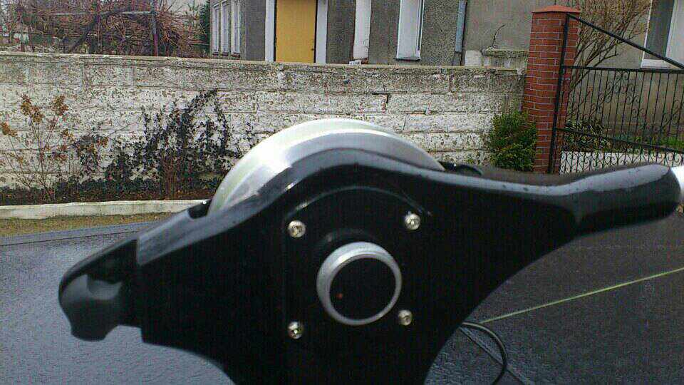 Tak cała obudowa jest robiona z laminatu w formach negatywowych wzmacniana dodatkowo kewlarem. W bocznej puszce pionowej jest silnik z przekładnią 12Vzabezpiczony bezpiecznikiem topikowym,i całkowicie od izolowany dodatkową ścianą od szpuli która może być mokra bardzo silna maszynka o odpowiednich obrotach na szpuli. Hamulec cierny coś w rodzaju naszych kołowrotków .Maszt teleskopowy z alu dodatkowo na początku wzmocniony rurą z nierdzewnej stali, może być demontowany na życzenie,na końcu rolka chroniona przed spadaniem linki obracająca się na osi masztu 90stopni.Opuszczanie kuli następuje po zluzowaniu lekko hamulca albo elektrycznie, na maszt ma być założony licznik linki z Cormorana jak dojdzie,i to cała zabawka z którą trzeba czekać do sezonu B) A teraz biorę się za redbuiling i będę zbroił wędki a co ja też chcę Tornado