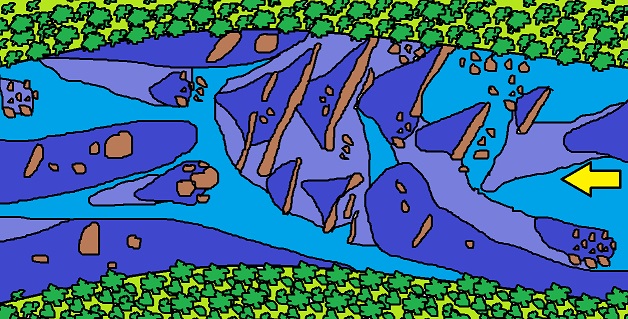 Podziwiam również próby "czytania" miejscówek na górskim Sanie  :D Polecam wybrać się tam jak poziom wody pozwoli na brodzenie, tymczasem proponuję taki poglądowy rysunek  ;)