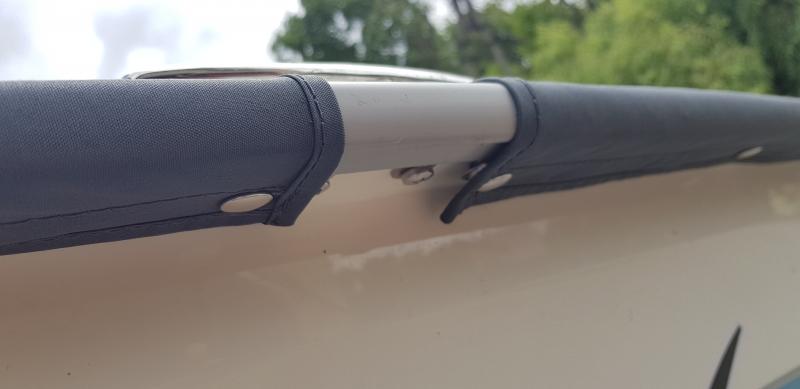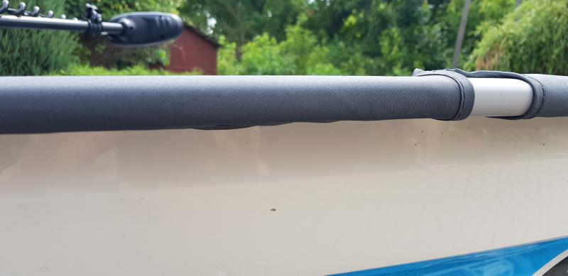 Używam sztywnej plandeki robionej na miarę. Spisuje się wyśmienicie. Trudno przewidzieć pogodę na przykład podczas trasy do Szwecji. Dodatkowo na łódce można przewozić całą masę nie koniecznie wodoodp