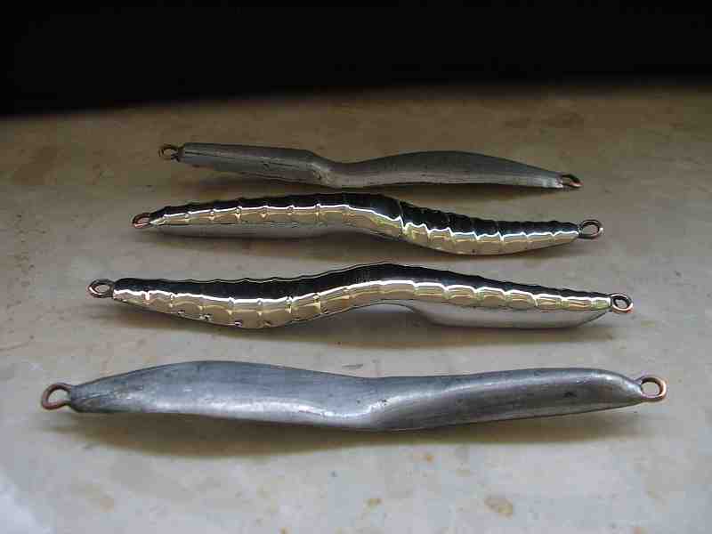 zamki Opublikowano 22 Maja 2006 Zgłoś Udostępnij Opublikowano 22 Maja 2006 Ot takie cudaczki sobie odlałem.Według opisu po testach przez Tom Roya blaszka zaczepiona za cieńszą stronę idzie spokojnie kolebiąc się a zaczepiona za szerszą dostaje pierdolca. Blaszka waży około 25 gr.i jest strasznie marudna w wykonaniu Cytuj Odnośnik do komentarza Udostępnij na innych stronach Więcej opcji udostępniania...