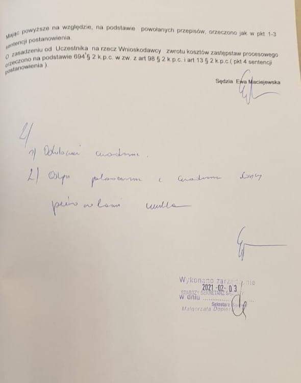 foreks Opublikowano 13 Marca 2021 Zgłoś Udostępnij Opublikowano 13 Marca 2021 (edytowane) Imho to postanowienie sądu dotyczy uchylenia uchwał ZG PZW i zwycięstwo OM. Edytowane 13 Marca 2021 przez foreks Cytuj Odnośnik do komentarza Udostępnij na innych stronach Więcej opcji udostępniania...